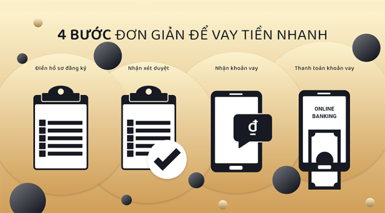 Chỉ cần cung cấp thông tin cá nhân kèm theo Chứng Minh Thư, Hộ Khẩu hoặc Sao Kê Bảng Lương, bạn có thể vay.
